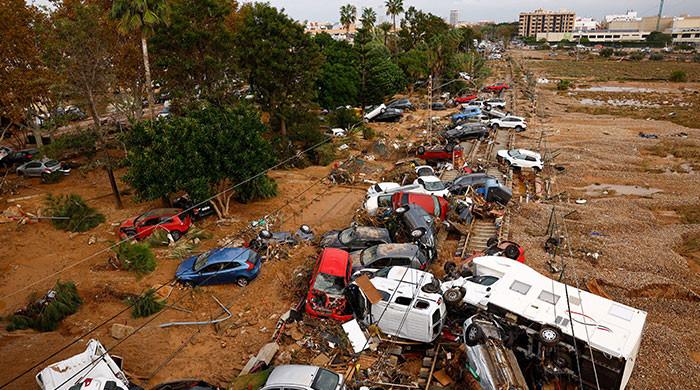 Vehicles are piled up on rail road tracks after heavy rains in Alfafar, in Valencia, Spain, November 1, 2024. — ReutersALFAFAR: Spanish rescuers opened a temporary morgue in a convention centre and battled to reach areas still cut off on Friday as the death toll from catastrophic floods rose...from The News International - World https://ift.tt/EqlGNU5